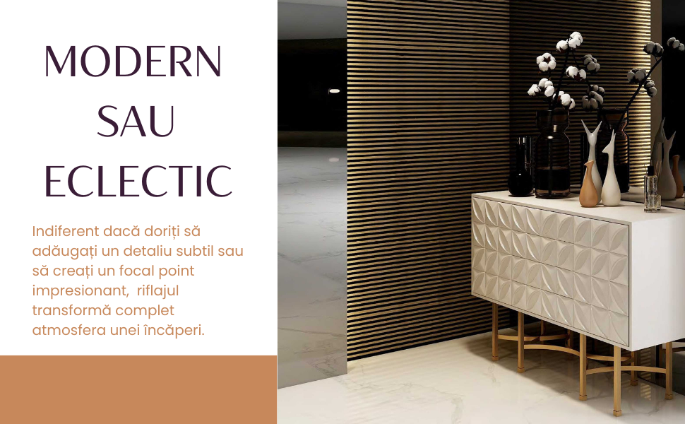 Indiferent dacă doriți să adăugați un detaliu subtil sau să creați un focal point impresionant, riflajele noastre pot transforma complet atmosfera unei încăperi.