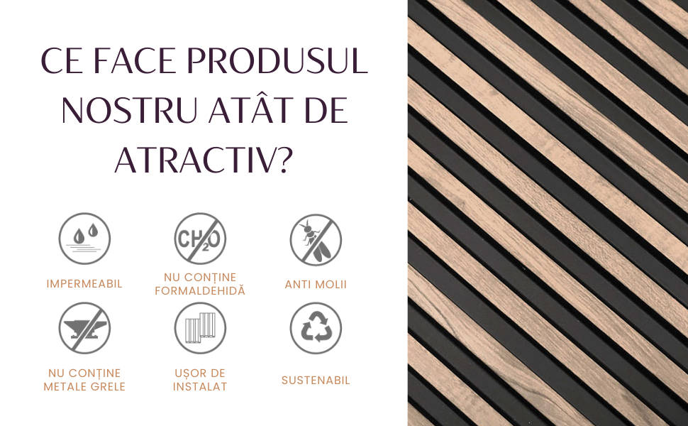 Lamelele cu aspect curat și modern creează un impact vizual puternic și aduc un plus de eleganță spațiului.